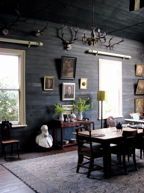 In addition we took out the mahogany dining table and replaced it with a Kauri kitchen table of quite some presence. I had bought this in an auction, falling in love with its legs. (Leg-love.) They are deep black and chunky looking. We also took away most of the red upholstered furniture which was going into another room anyway.