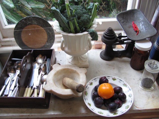But someone like Elizabeth David made wonderful meals in a tiny basement kitchen with everything jammed in. It’s not ideal. And somehow the kitchen we’ve ended up with here is small. It has a beautiful bench of kauri and a butler’s sink about which I have mixed feelings. (It needs a butler to keep it looking good.)