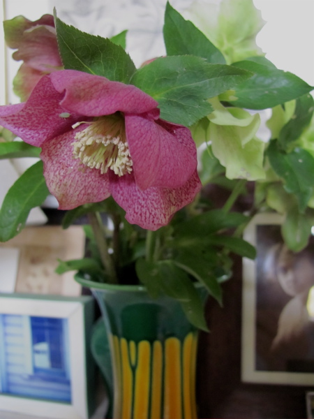 One of those things you need to know – is that you need to pick Helleborus in the morning as the young flowers are inclined to wilt and to split the stems and plunge into hot water. After that they’ll last quite well but it’s any easy step to overlook. Because the don’t smell they make a great companion for Daphne which does. In Beverly’s book he talks about winter jasmines that flower at the same time (as they do) and I could see that might work too.