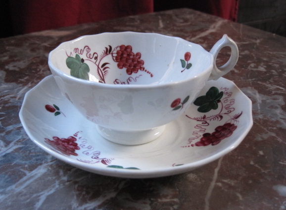 This tea set, a lovely lively little early nineteenth century production, decorated with grape vines and fruit, came to us from our favourite source, Maidens & Foster, the local auctioneer. I had spotted this a week or so back but it had disappeared by sale day. I suspected that Todd had moved it to the antique sale, upgraded it so to speak, but no it had simply gone into the overflow and turned up in the estate sale the following Wednesday.