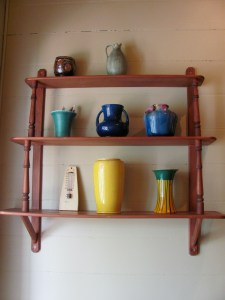 The bureau hadn’t sold in the antique auction the previous week. A phonecall and Douglas and I owned it. ($120 to transport it to Hawke’s Bay.) Then came the fun part – fitting it into the room – surprisingly easy, as if it always belonged. Then the really fun part – decorating it with all our plates and other things. This was better than Christmas, better than New Years. It was almost better than winning a book prize (…almost.)