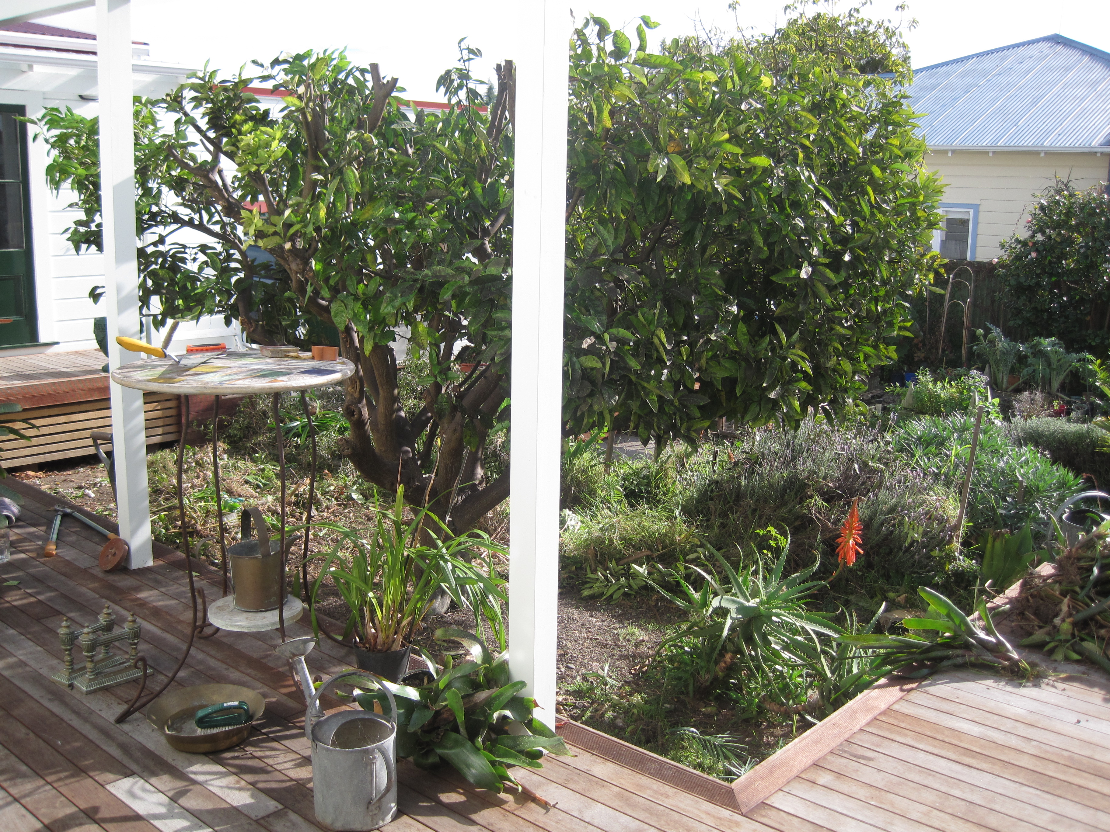 There is a problem in the middle of this garden in the form of an old mandarin tree. It is enormous and although the fruit are good they are too high and too plentiful (this is Hawke’s Bay after all). We all pretend we like mandarins but on this scale one simply can’t keep up and the tree ends up with fruit from two or three seasons ago – most of which frankly go into the compost.