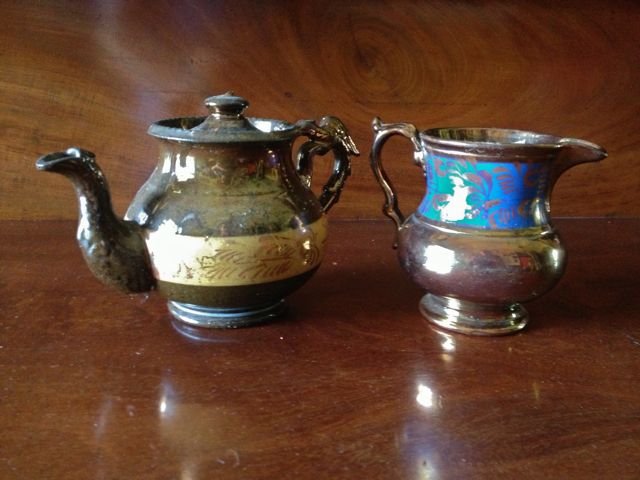 These pieces were intended for a middle class to whom silver plated items had not yet come down sufficiently in price. Of course silver plate did eventually come down in price and the highly breakable lustrewares became rare and therefore eventually collectable.