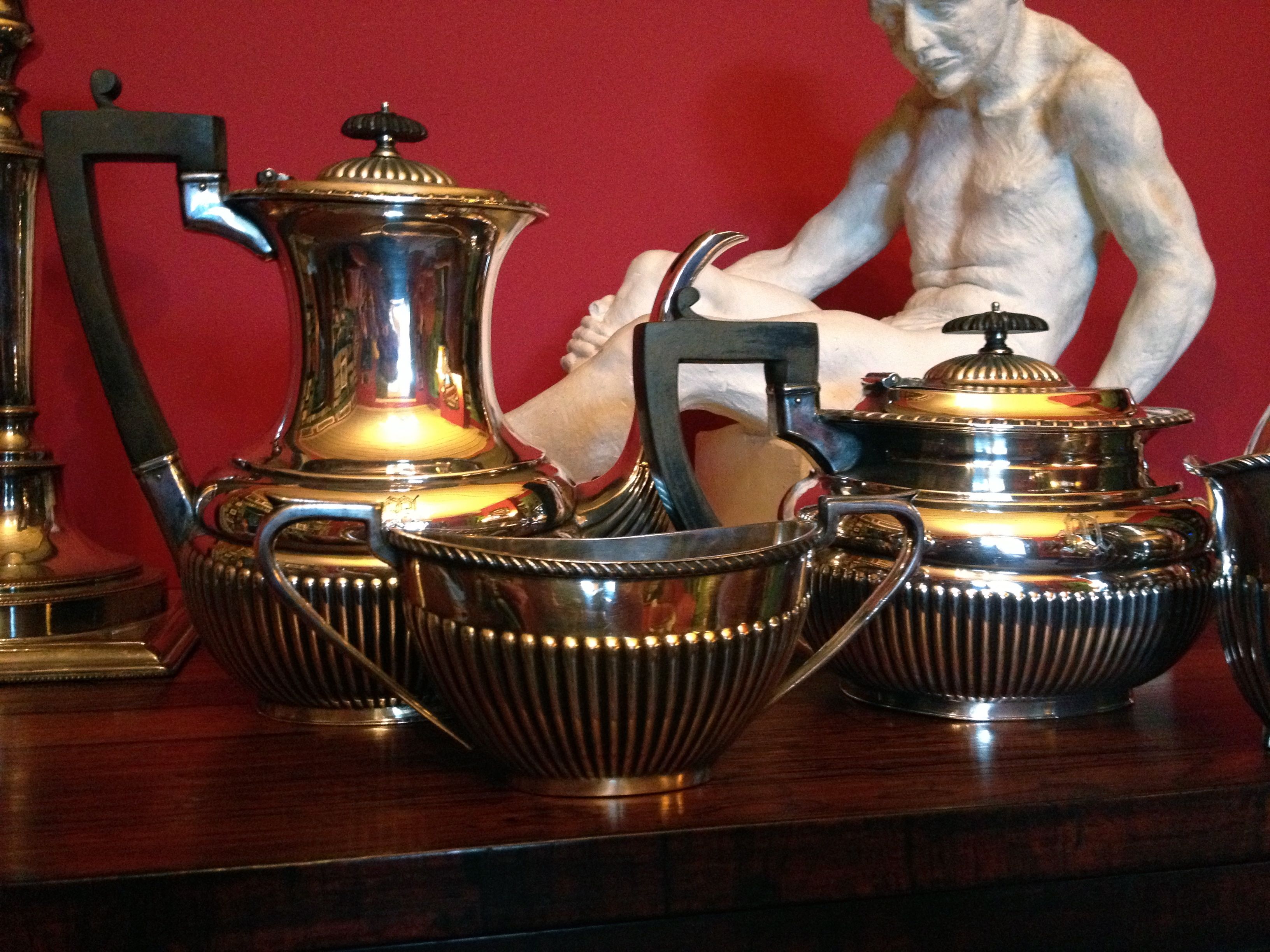 Some people think silver tea sets are pretentious..not me. I think they are a great way to start the day..gleaming silver is great at breakfast to help feel energetic. Later in the day ceramic is fine. Although I have always had a hankering for a gold tea set. I think that might elude me in this life!
