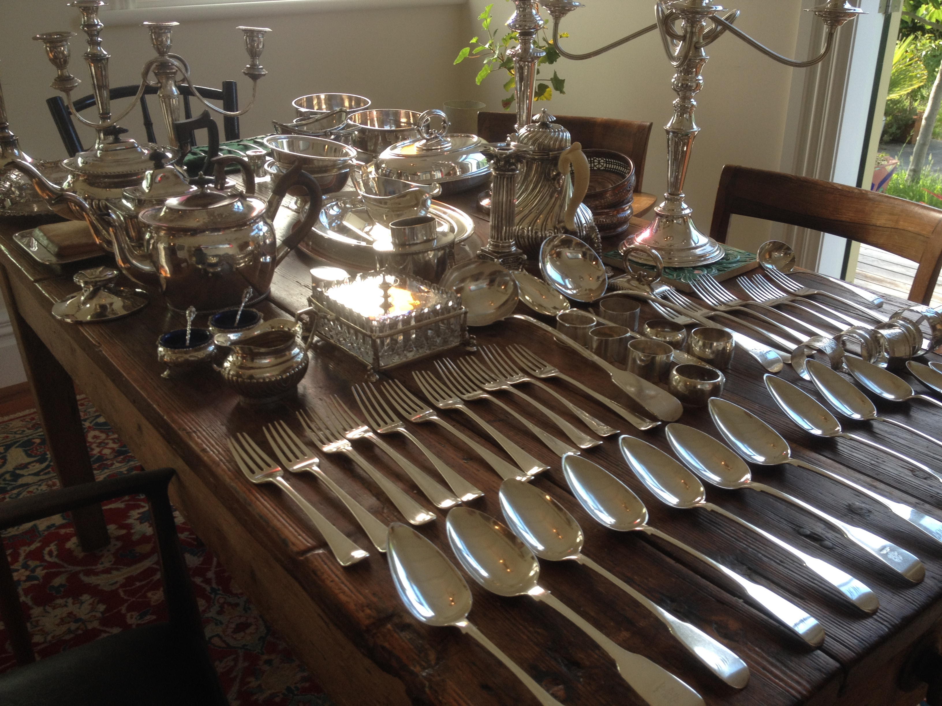 What would have been a week’s work took the better part of a Saturday but it was worth it to see the table covered in gleaming silver.  Silver has fallen from fashion in large but because of people’s resistance to cleaning. It’s sad because not only has silver work been one of the mainstays of the decorative arts for centuries but also polished up, nothing suits a white linen table top better than gleaming silver. However best of all the mother’s were well impressed at how clean the silver was. We didn’t tell Bess about having usurped the secret powers of RINSO.
