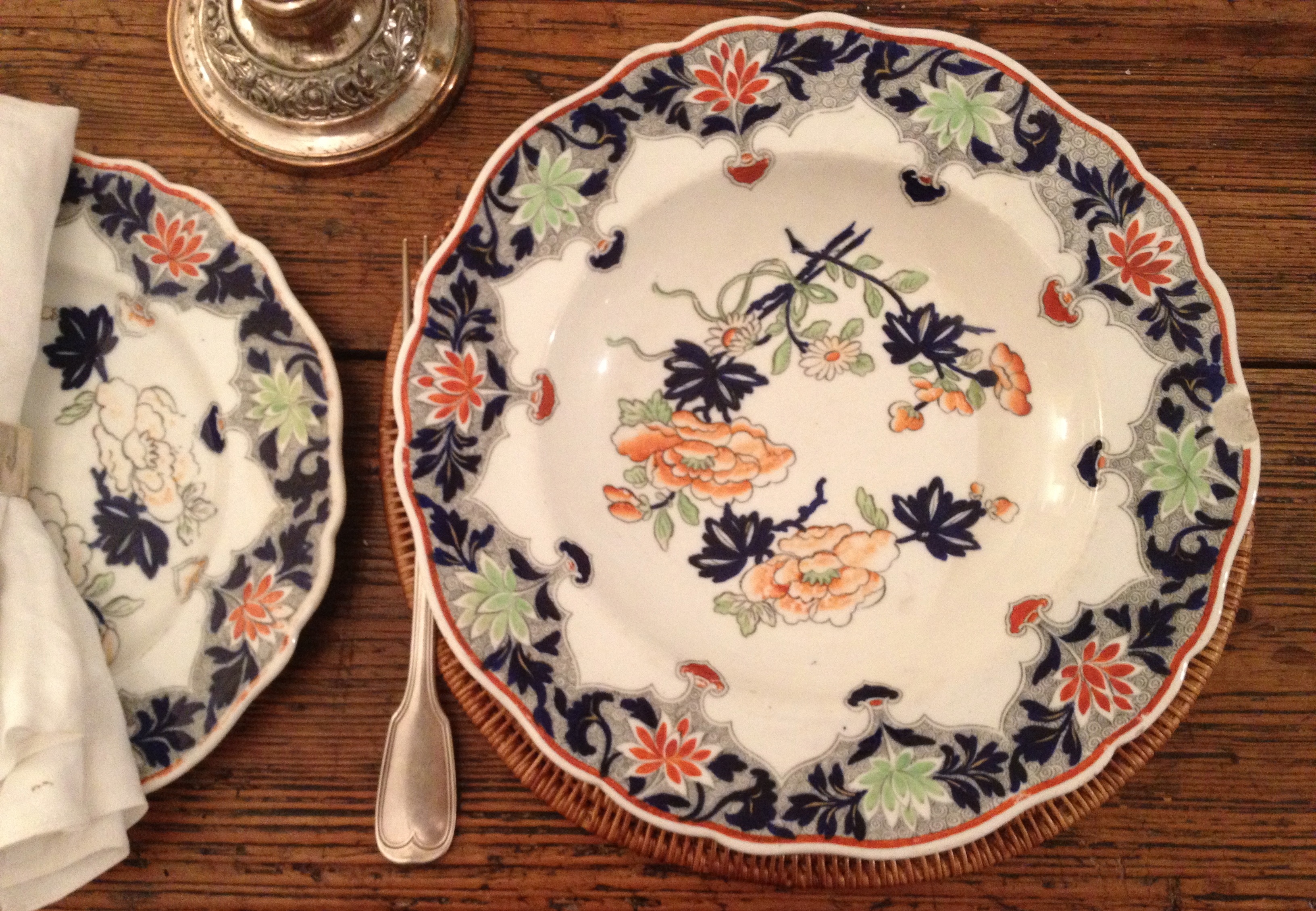 Two lovely Victorian soup plates – purchased previously in another auction battle now long forgotten in their golden candle lit glow